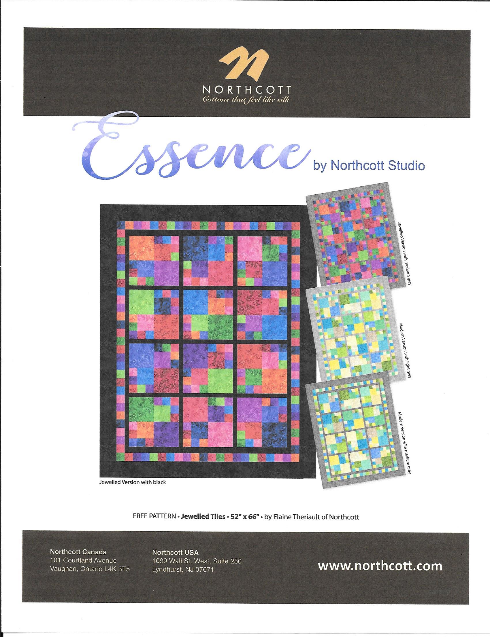 Colorful pattern from Northcott. Uses bright simple squares to cheer any room. Would work great with Atlantia fabric collection paired with black and dark gray. Pattern features squares and strip piecing. Easy to assemble, Would work well with any fabrics.