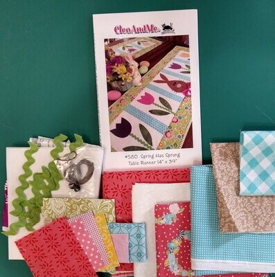 Kit included: Material to make the runner top and bottom, buttons for bunny eyes, green rickrack and embroidery floss. You will just need to a piece of 19" X 46" batting.